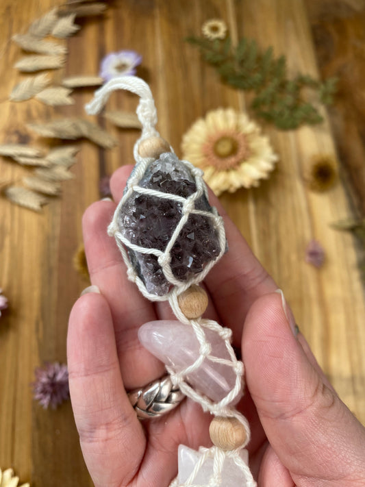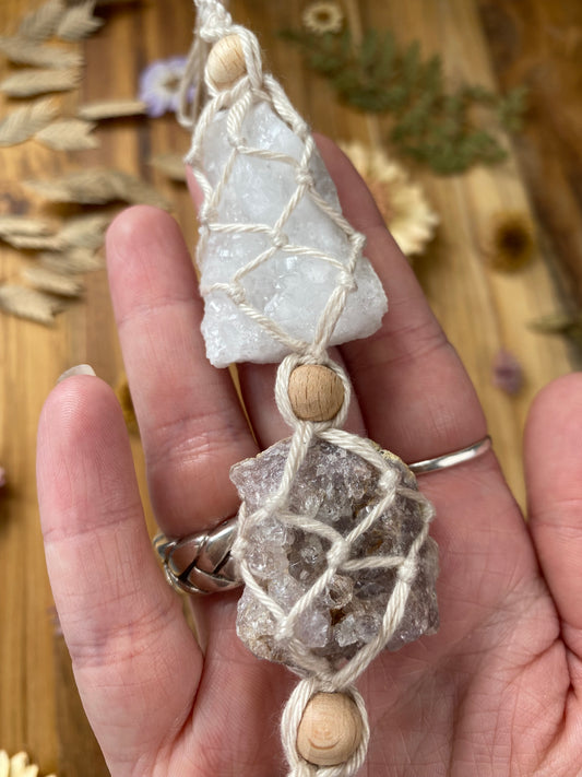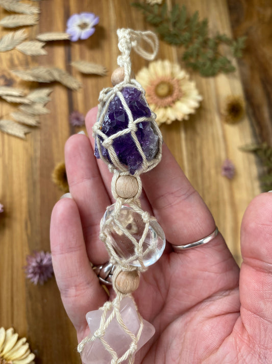 Hanger met borniet, sneeuwvlok obsidiaan & rookkwarts